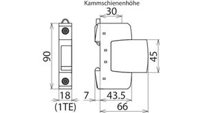 Durchgangsklemme zur Kammschienenverdrahtung.