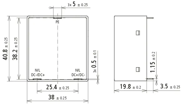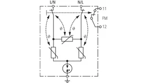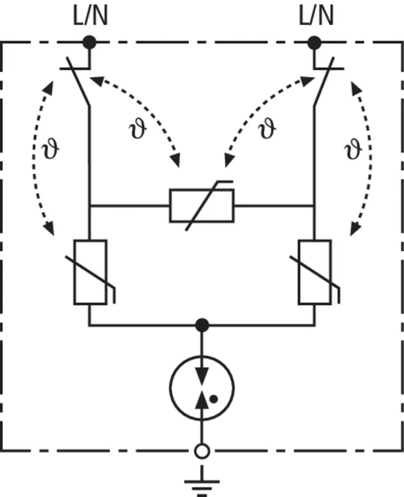 | – Nennableitstoßstrom (8/20 µs) bei ≤70 °C [L-N/N-PE / L-PE] (In ) | 5,5 kA +-5 times, interval 1min. (each time), interval 25 min. (each group) |
