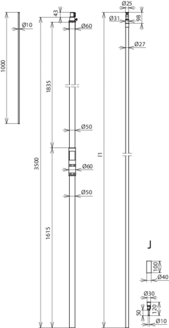 | Max. freie Länge mit Fangspitze (Wandmontage) | 3500 mm |