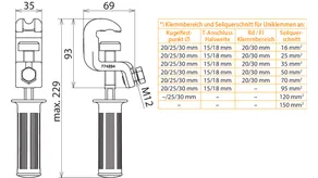 | Für T-Anschlussbolzen Halsweite | 18 mm |