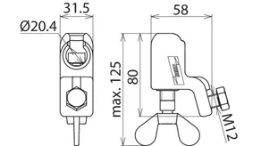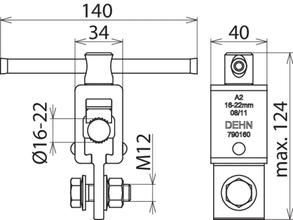 - Zum erdseitigen Anschluss an Kugelfestpunkte, T-Anschlussbolzen, Rund- und Flachleitern, Anschlussstücke und Flachprofile