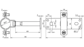 mit Distanzstück 85 mm zur Befestigung an Rohren z.B.