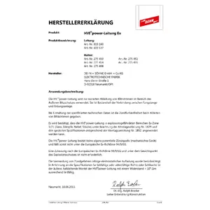 Das Produkt HVI power Leitung ist für den Einsatz in explosionsgefährdeten Bereichen der Ex-Zone 1 (Gase, Dämpfe, Nebel) sowie Ex-Zone 21 (Stäube) geeignet.