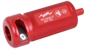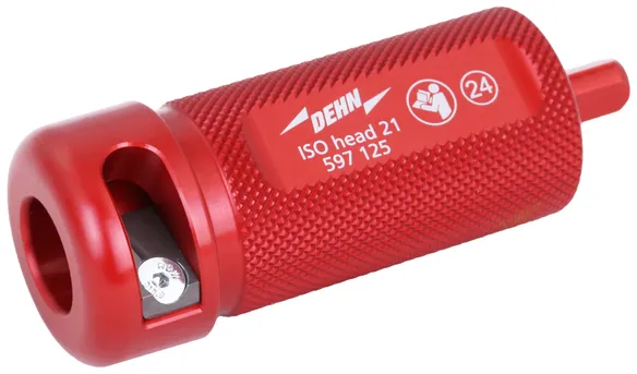 HVI strip 20 Werkzeug zum Absetzen des halbleitenden Mantels und gleichzeitig der PE-Isolierung der HVI Leitung und HVI light plus Leitung mit einem Außendurchmesser von 20 mm. Die Abisolierlänge ist in Stufen (Rastpunkte) von 0,2 mm über das im Griff eingebaute Stellrad regulierbar. Ausführung komplett mit Handgriff und Schneidkopf.