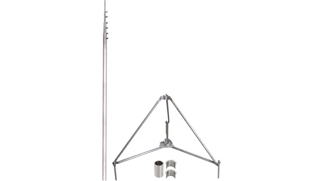 Teleskopierbare Fangstange freistehend mit klappbarem NIRO Dreibeinstativ zum Schutz von größeren Dachaufbauten.