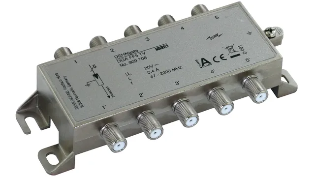 Überspannungs-Ableiter mit F-Anschlüssen. 5-fach Schutz für Antennenverteiler und Multischalter.