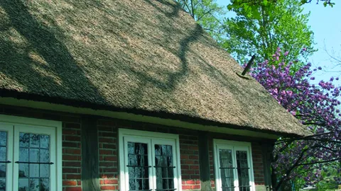 Blitzschutzanlagen an Gebäuden mit weicher Bedachung „Reetdach“ werden heute häufig mit isolierten HVI Blitzschutz ausgeführt.