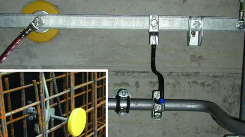 Fixed earthing terminals and connecting clamps for establishing equipotential bonding. Earth electrode and wall bushings for safely entering conductors into a building. Rebar clamps for connecting the reinforcement to the earth-termination system in such a way that it can carry lightning currents.