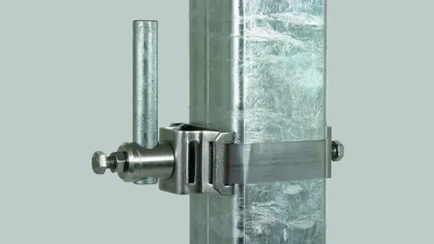 Air-termination rods, air-termination tips, telescopic lightning protection masts and accessories for protecting elevated roof-mounted structures or buildings.
