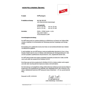 Das Produkt HVI Leitung ist für den Einsatz in explosionsgefährdeten Bereichen der Ex-Zone 1 (Gase, Dämpfe, Nebel) sowie Ex-Zone 21 (Stäube) geeignet.