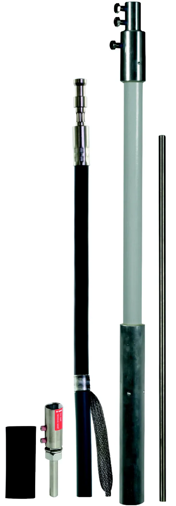 – Der innenliegende Endverschluss ist mit einem flexiblen NIRO-Band für den Anschluss an den Potentialausgleich am unteren Ende des Stützrohres herausgeführt