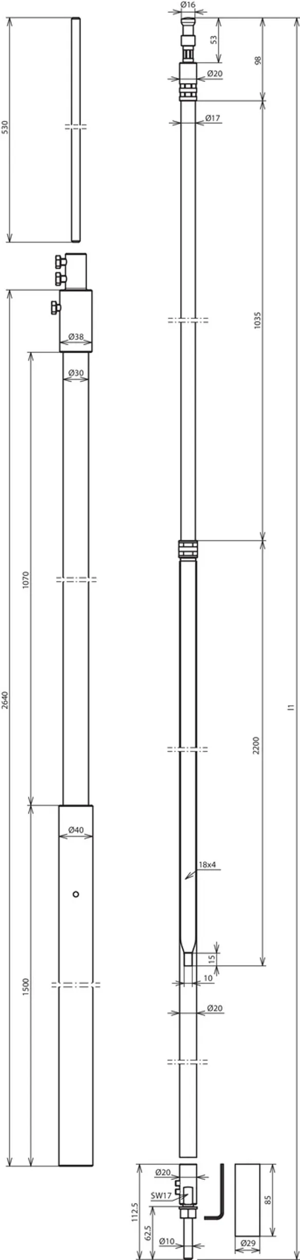 – Stützrohr mit Isolierstrecke aus glasfaserverstärktem Kunststoff (GFK) Rohr Ø30 mm