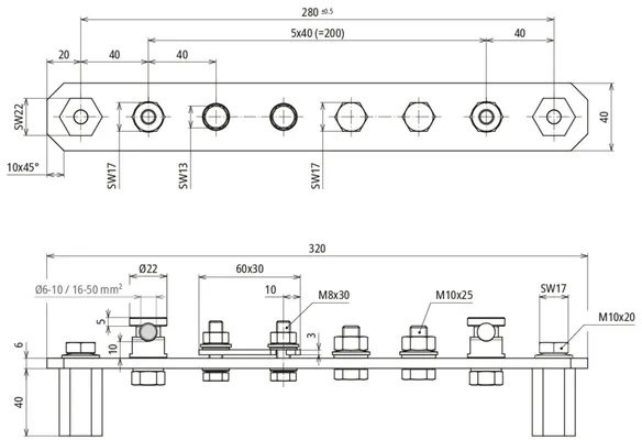 | Anschlüsse | 1x KS-Verbinder, 2x Schraubanschluss M10 |