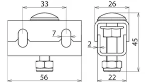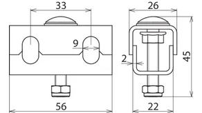| Befestigungsbohrungen für Kabelbahn | [4x] 9 x 20 / [1x] 9 x 9 mm |