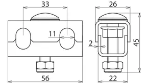 | Anschlussbohrungen für PA-Leiter mit Kabelschuh | 3x Ø11 mm, 3x Ø9 mm, Zugentlastung 3x Seilklemme M6 |