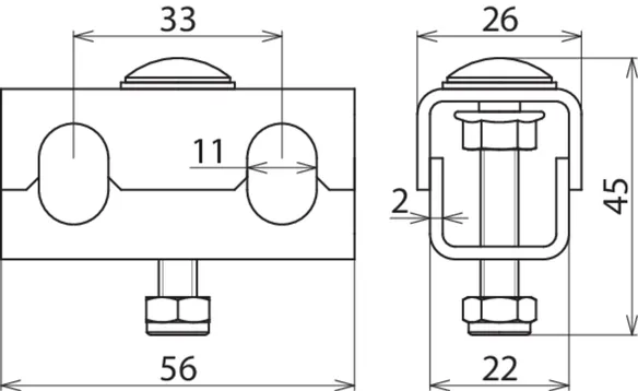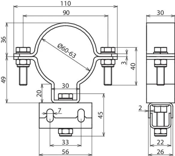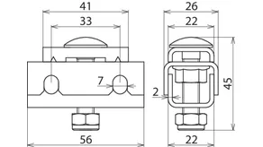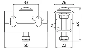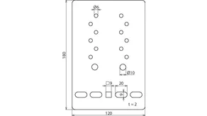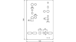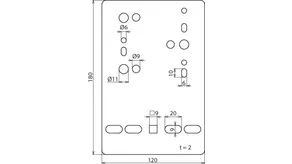 | Befestigungsbohrungen für Gitterbahn | [4x] 9 x 20 / [1x] 9 x 9 mm |