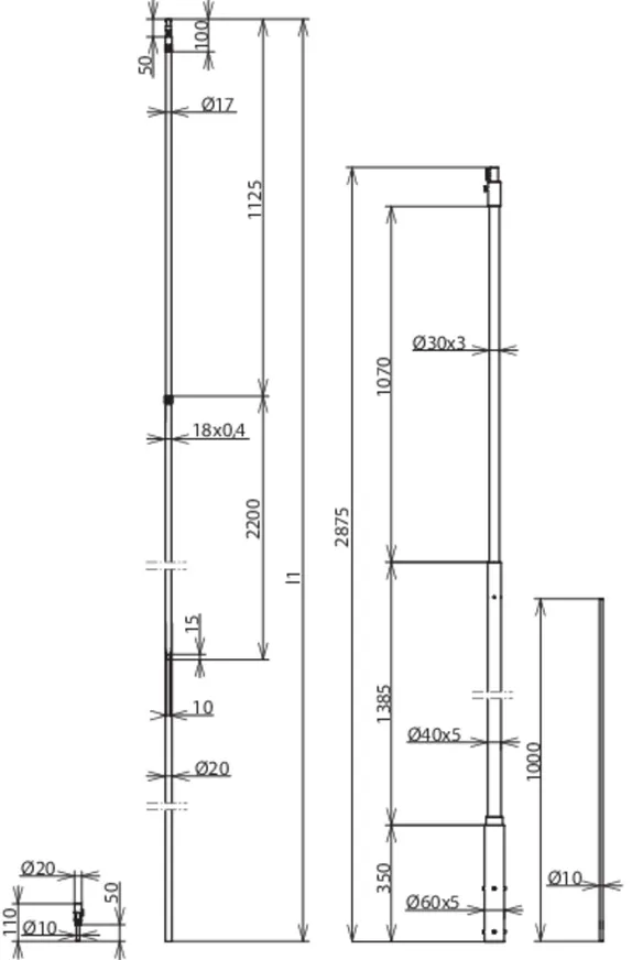 | Länge Stützrohr | 2875 mm |