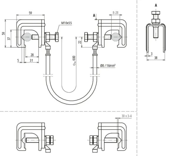 Klemmbereich Fl Verbindungsklemme 30 x 3-4 mm