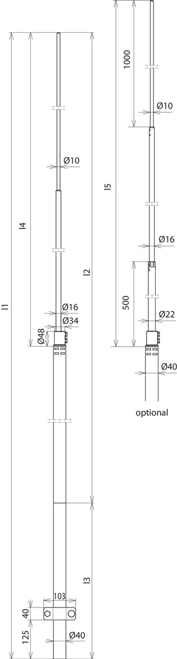 Einspannlänge (l3) 1000 mm