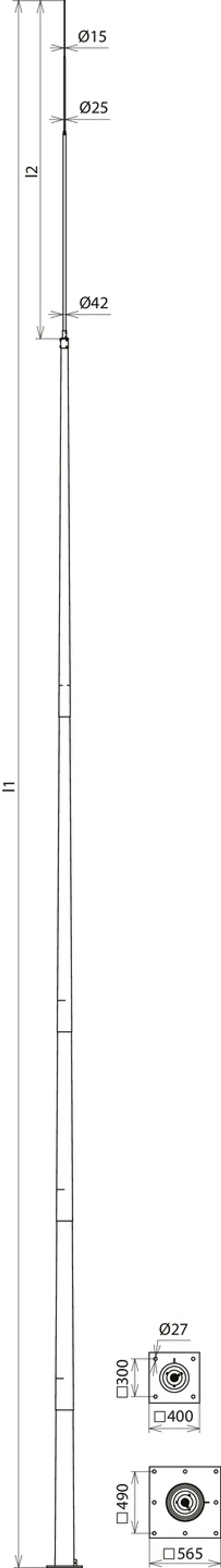 | Ausführung Flanschplatte | 8x Ø27 mm für 8x M24 (490 x 490 mm) |