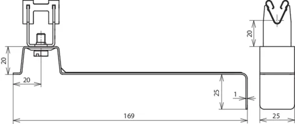 Dachleitungshalter, mit gewinkelter Strebe für Dachflächen zum Einhängen in die Pfanne oder in die Dachlattung