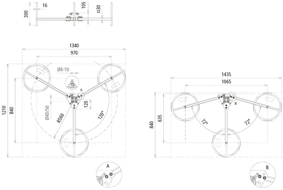 | Platzbedarf Stativ | 1300 x 1450 mm |