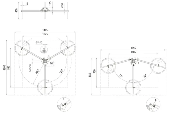 | Platzbedarf Stativ | 1880 x 1880 mm |