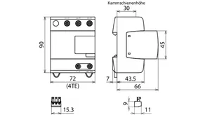 | SPD nach EN 61643-11 / IEC 61643-11 | Typ 1 + Typ 2 + Typ 3 / Class I + Class II + Class III |