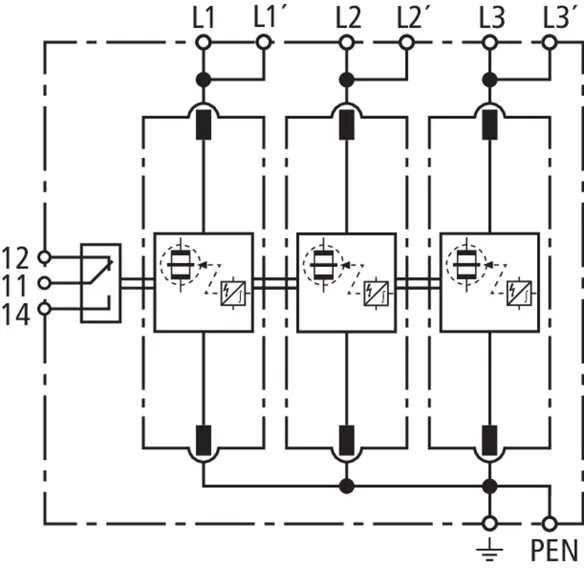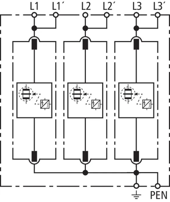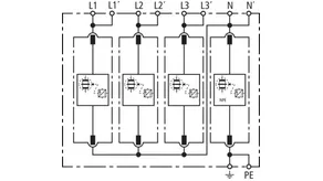 | Blitzstoßstrom (10/350 µs) [L1+L2+L3-PEN] (Itotal ) | 75 kA |