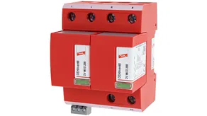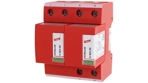 - Anschlussfertiger Kombi-Ableiter Typ 1 + Typ 2 + Typ 3 auf Funkenstreckenbasis, bestehend aus Basisteil und einem einzelnen gesteckten Schutzmodul