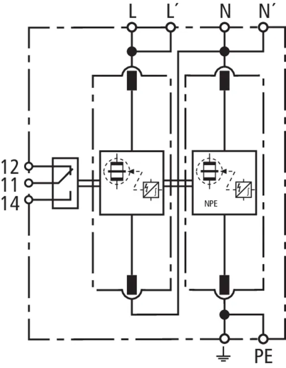 | Blitzstoßstrom (10/350 µs) [L-N]/[N-PE] (Iimp ) | 25 / 50 kA |