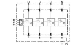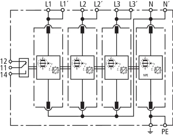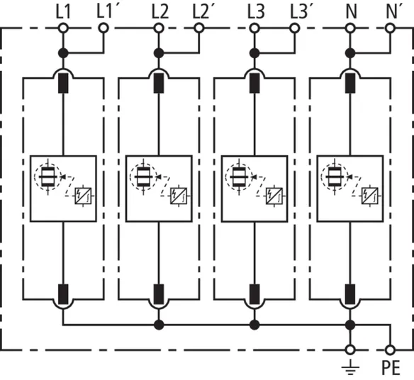 | Blitzstoßstrom (10/350 µs) [L1+L2+L3+N-PE] (Itotal ) | 100 kA |