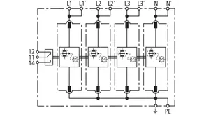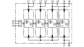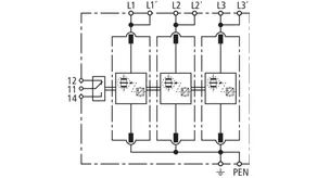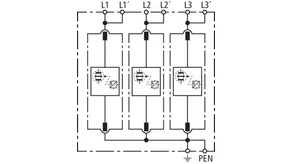 | Blitzstoßstrom (10/350 µs) [L1+L2+L3-PEN] (Itotal ) | 75 kA |