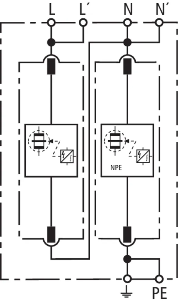 | Blitzstoßstrom (10/350 µs) [L, N-PE] (Iimp ) | 25 kA |