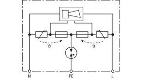 | Gesamtableitstoßstrom (8/20 µs) [L+N-PE] (Itotal ) | 5 kA |