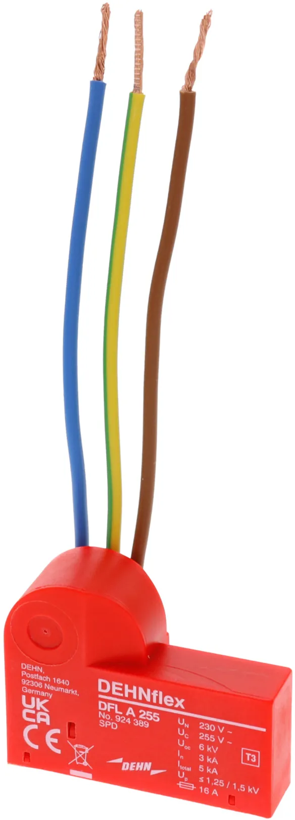 | Gesamtableitstoßstrom (8/20 µs) [L+N-PE] (Itotal ) | 3 kA |