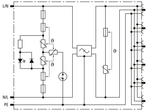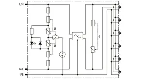 | Gesamtableitstoßstrom (8/20 µs) [L+N-PE] (Itotal ) | 5 kA |