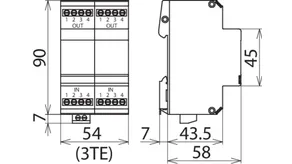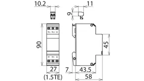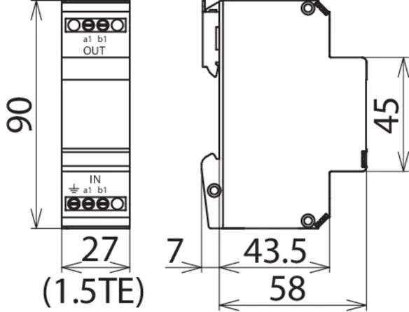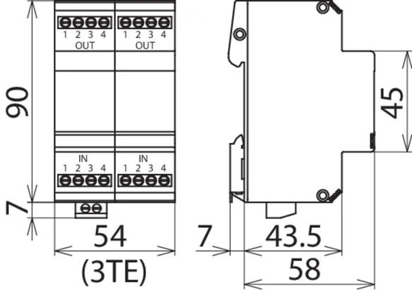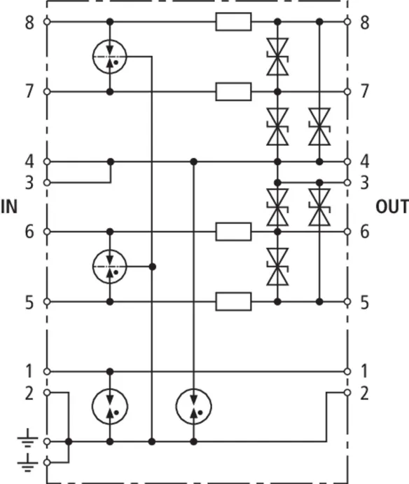 Energetisch koordinierter leckstromfreier Überspannungs-Ableiter für a/b-Ader, ISDN Uk0 oder ADSL mit RJ45-Anschlüssen und zusätzlichen Schraubklemmenanschlüssen. Das Pinning der RJ45-Buchsen ist RJ11/12-kompatibel. Die parallelen Schraubklemmen sind robuster als die RJ45-Buchsen und erhöhen den Nennableitstoßstrom gesamt auf 10 kA.