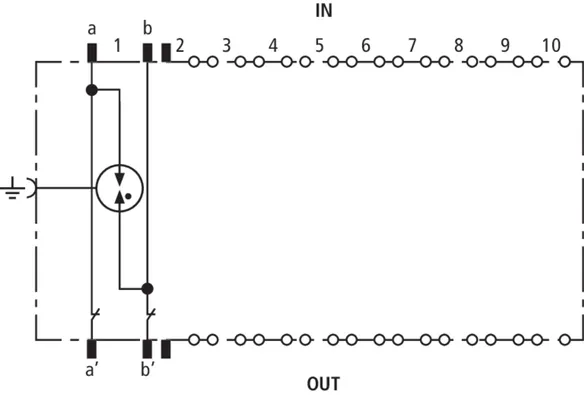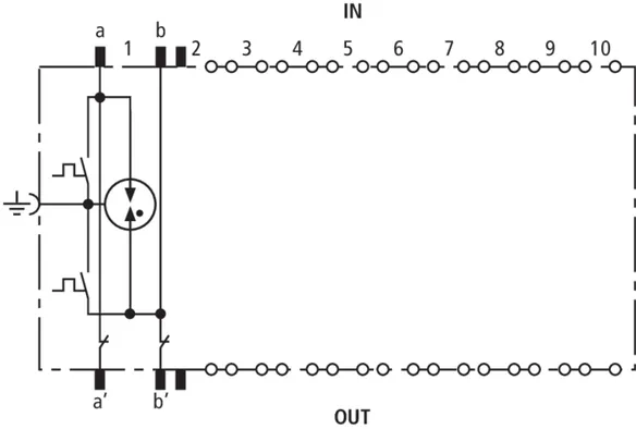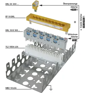 - Integrierte LSA-Trennleistenfunktion im Blitzstrom-Ableiter bietet zudem Schutz beim Prüfen, Trennen und Patchen