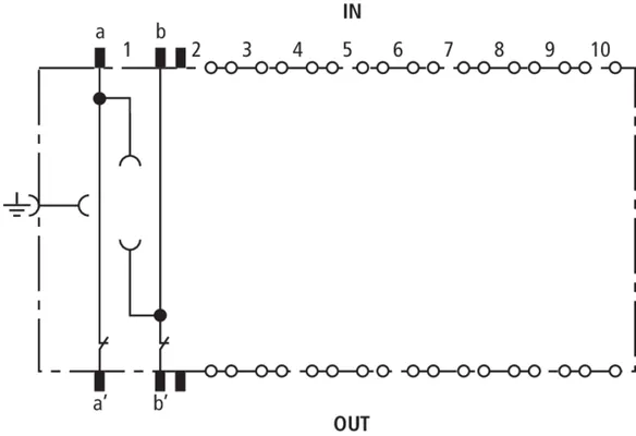 Gesteckt in den Erdungsrahmen EF 10 DRL verbindet das Erdungsmodul eine an der LSA-Trennleiste aufgelegte Doppelader mit dem Potentialausgleich. Es dient der direkten Erdung von Kabeladern, die noch nicht benutzt werden, jedoch bereits auf der LSA-Trennleiste aufgelegt sind. Das Erdungsmodul ist nicht in Verbindung mit Steckmagazin DRL 10 B... einsetzbar.