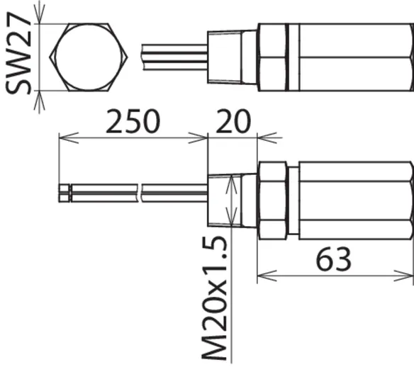 | Montage Feld- / Geräteseite | M20 x 1,5 Außengewinde |