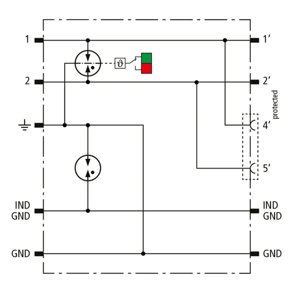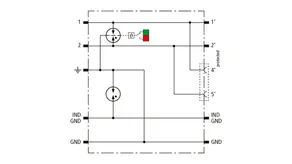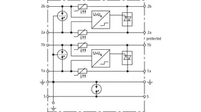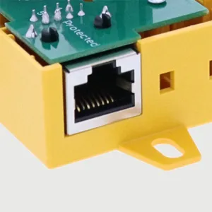 Platzsparender kompakter Überspannungs-Ableiter im Kunststoff-Aufputz-Gehäuse mit Push-in Anschlusstechnik und Statusanzeige zum Schutz einer Doppelader erdpotentialfreier symetrischer Schnittstellen, insbesondere Telekommunikationsschnittstellen bis VVDSL und G.fast (bis 1 Gbit/s). Möglichkeit zur direkten / indirekten Schirmerdung. Ausgangsseitig wahlweise Anschluss einer Doppelader oder einer Patchleitung mit RJ45 Stecker.