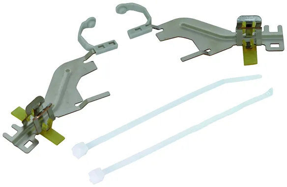 Zwei Federklemmen für die geschützte und ungeschützte Seite eines BLITZDUCTOR SP/XT/XTU zur dauerhaften, niederimpedanten Schirmkontaktierung einer geschirmten Signalleitung. Mit steckbarer Isolierkappe für die indirekte Schirmerdung (nur BXT), mit Kabelbindern und Isolierstreifen. Einsetzbar für die Typen BXT(U) ML2 ...S ... / BSP M2 ... (nur direkte Schirmerdung).
