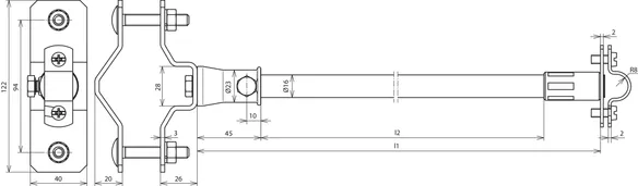 DEHNiso-Distanzhalter mit Leitungshalter Länge 1030mm NIRO