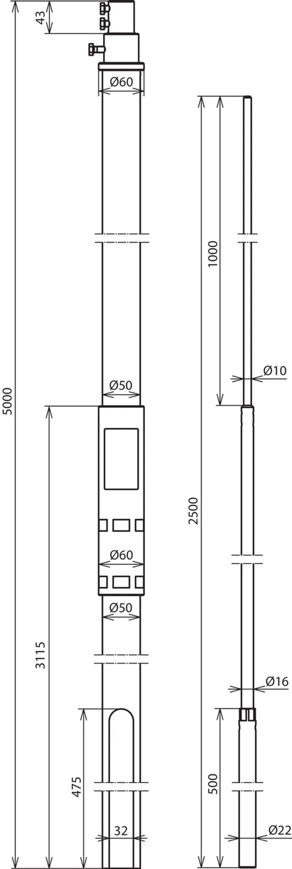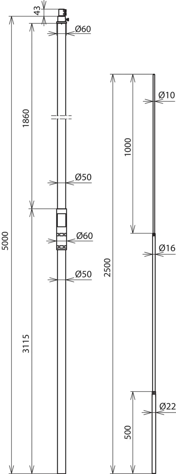 | Max. freie Länge mit Fangstange (Wandmontage) | 5000 mm |
