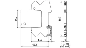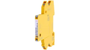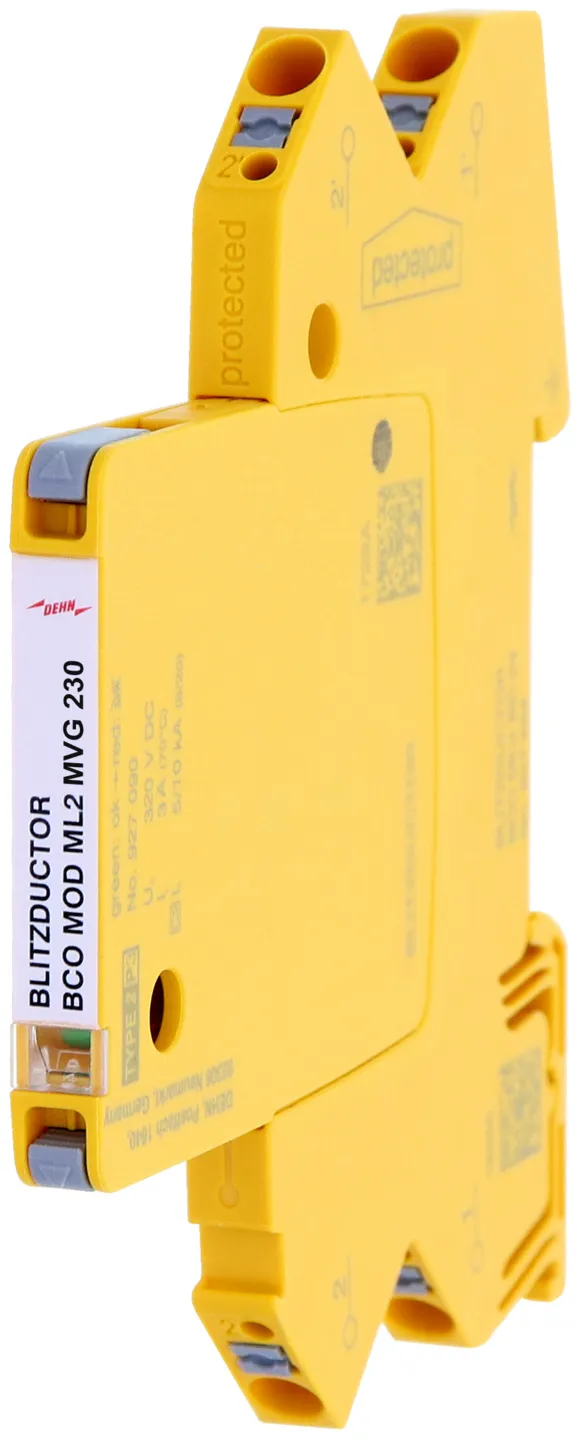 Platzsparender, modularer Überspannungs-Ableiter in 6 mm Baubreite und Push-in-Anschlusstechnik mit Statusanzeige zum Schutz von 2 Adern mehradriger, erdpotentialfreier Signalschnittstellen mit Nennspannung 230 V. Mit Signaltrennung für Wartungszwecke.