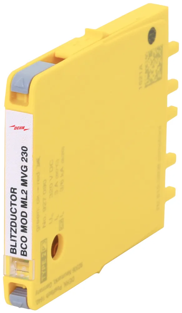 Überspannungs-Ableiter-Schutzmodul in 6 mm Baubreite für BLITZDUCTORconnect mit Statusanzeige zum Schutz von 2 Adern mehradriger, erdpotentialfreier Signalschnittstellen mit Nennspannung 230 V.