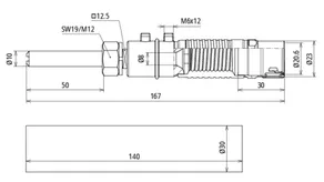 | Anschluss | Bolzen Ø10 mm, L 50 mm mit Gewinde M12 mit Federring |