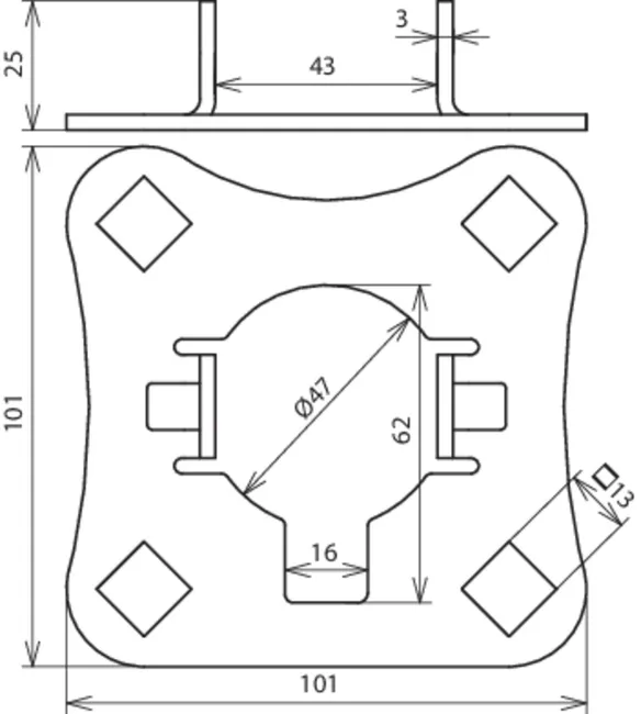 | Aufnahme Anschlussplatte | Vierkantloch 13 |