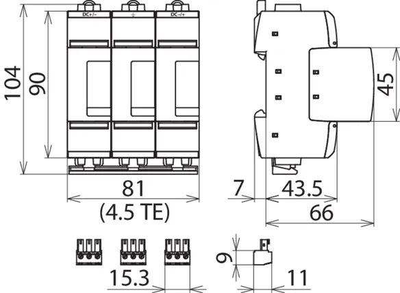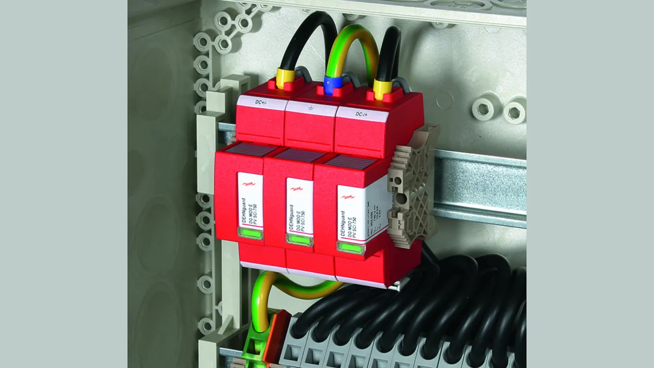 - Verdrahtungsfertige, modulare Kompletteinheit für Photovoltaik-Anlagen bis 1500 V, bestehend aus Basisteil und gesteckten Schutzmodulen